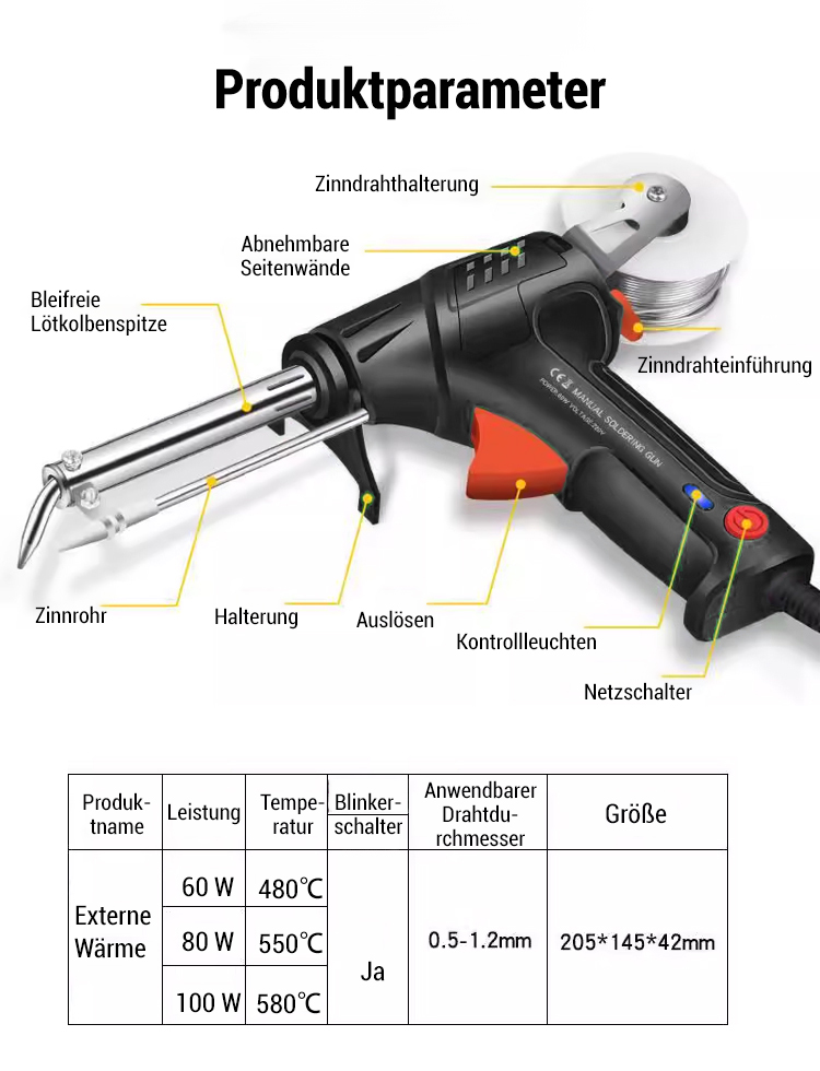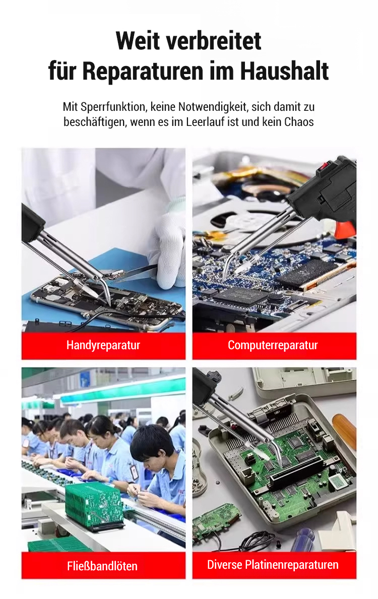 Einstellbar von 90 °C bis 480 °C, schweißt Stahl, Kupfer, Eisen, Aluminium und verschiedene Legierungen in 3 Sekunden. Kann auch an Präzisionsgeräten wie Smartphones und Uhren verwendet werden. Wählen Sie aus drei Modi und stellen Sie mit nur einer Schweißung den neuwertigen Zustand wieder her!